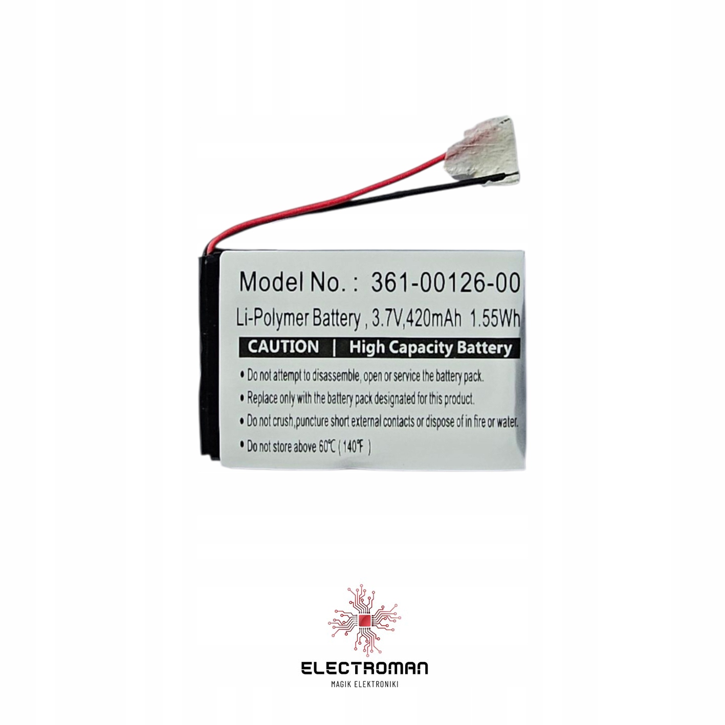- Pojemność: 420 mAh (1,55 Wh)