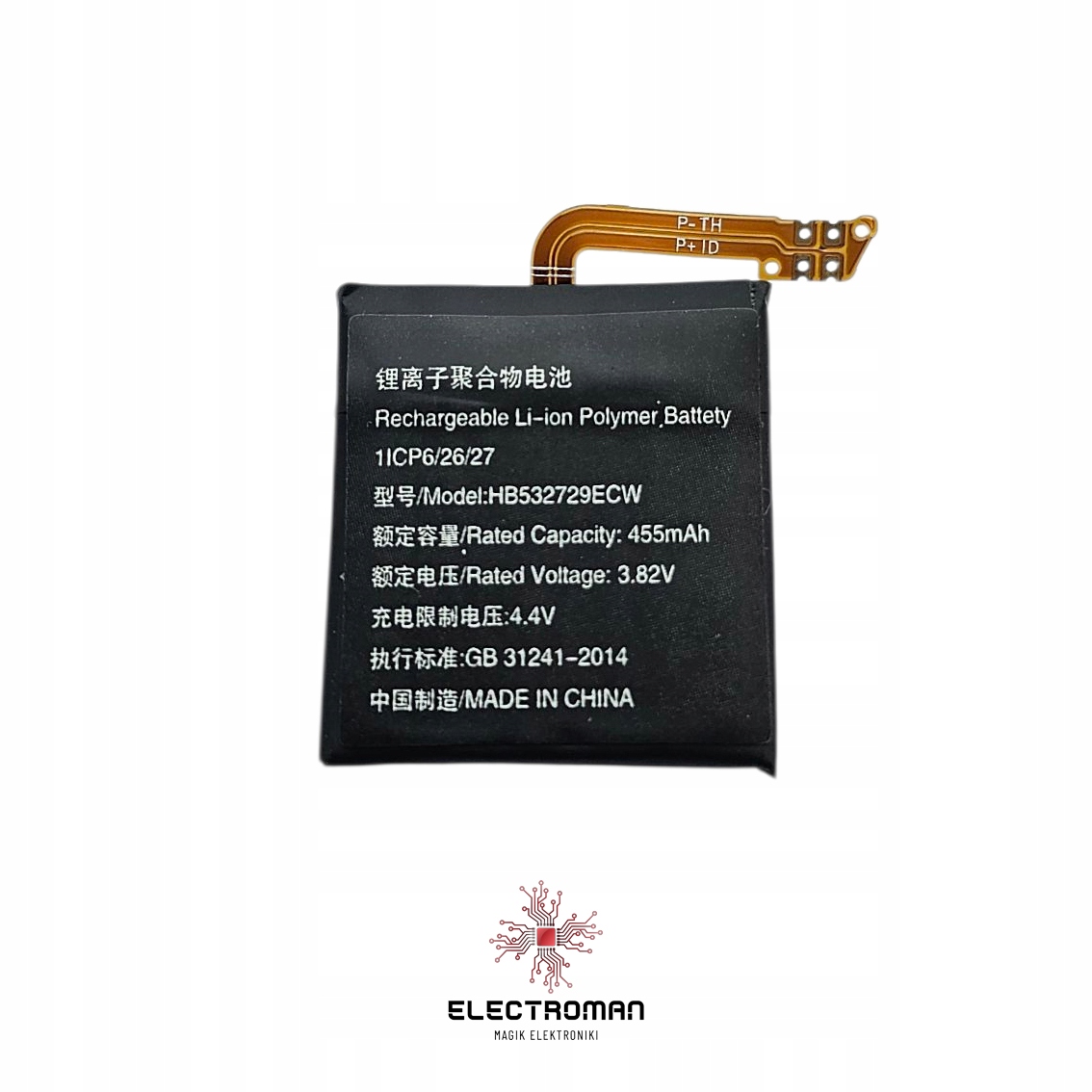 Bateria HB532729ECW – wysokiej jakości akumulator litowo-jonowy (Li-ion Polymer) do zegarków Huawei Watch GT 2 46 mm oraz Huawei Watch GT 2 Pro 46 mm (wersje z ogniwem HB532729ECW). Komponent klasy serwisowej (OEM) – idealny do wymiany zużytej baterii.