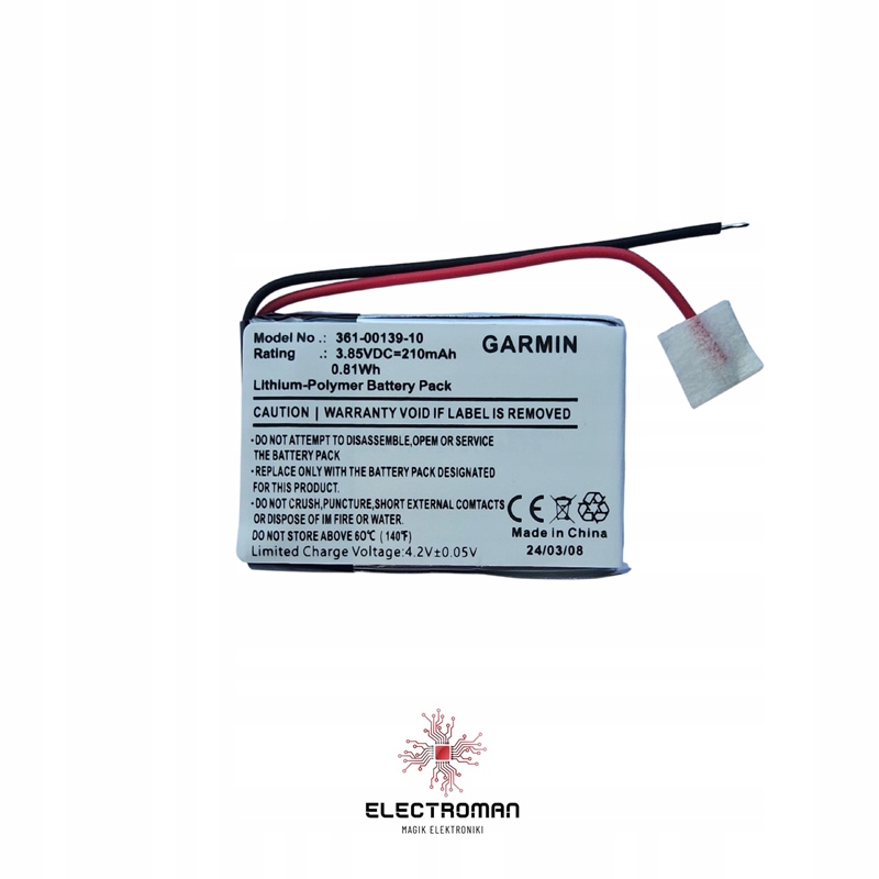 Oryginalna Bateria Garmin 361-00139-10 | 210mAh | 3.85V | Li-Po